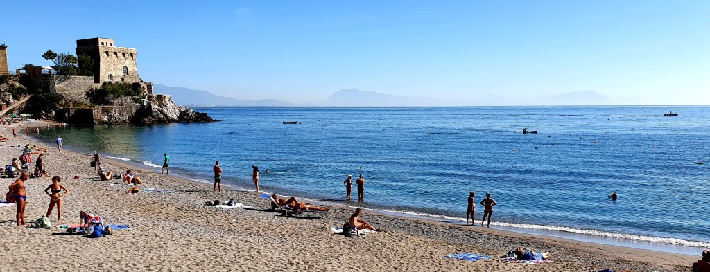 La giornata dei villeggianti cominciava alle otto in punto con l’Ave Maria di Schubert che veniva messa a tutto volume sul bagno di Rafele, il lido Adriana. Le note dolci e melodiose della preghiera arrivavano dappertutto, perfino sulla Turina. C’era poi il pescivendolo che veniva con il suo furgoncino da Cetara e che girava per il paese gridando con voce cantilenante “o pisciaiolo! ‘e pisce frische”. Verso le dieci, i villeggianti cominciavano a scendere in spiaggia e il jukebox del Lido Adriana faceva partire la colonna sonora della giornata al mare con le note delle canzoni del momento: Voce ‘e notte di Peppino di Capri, Riderà di Little Tony, Abbronzatissima e i Vatussi di Sergio Endrigo, Sapore di sale di Gino Paoli, il Cielo in una stanza di Mina e l’immancabile Cuore di Rita Pavone.